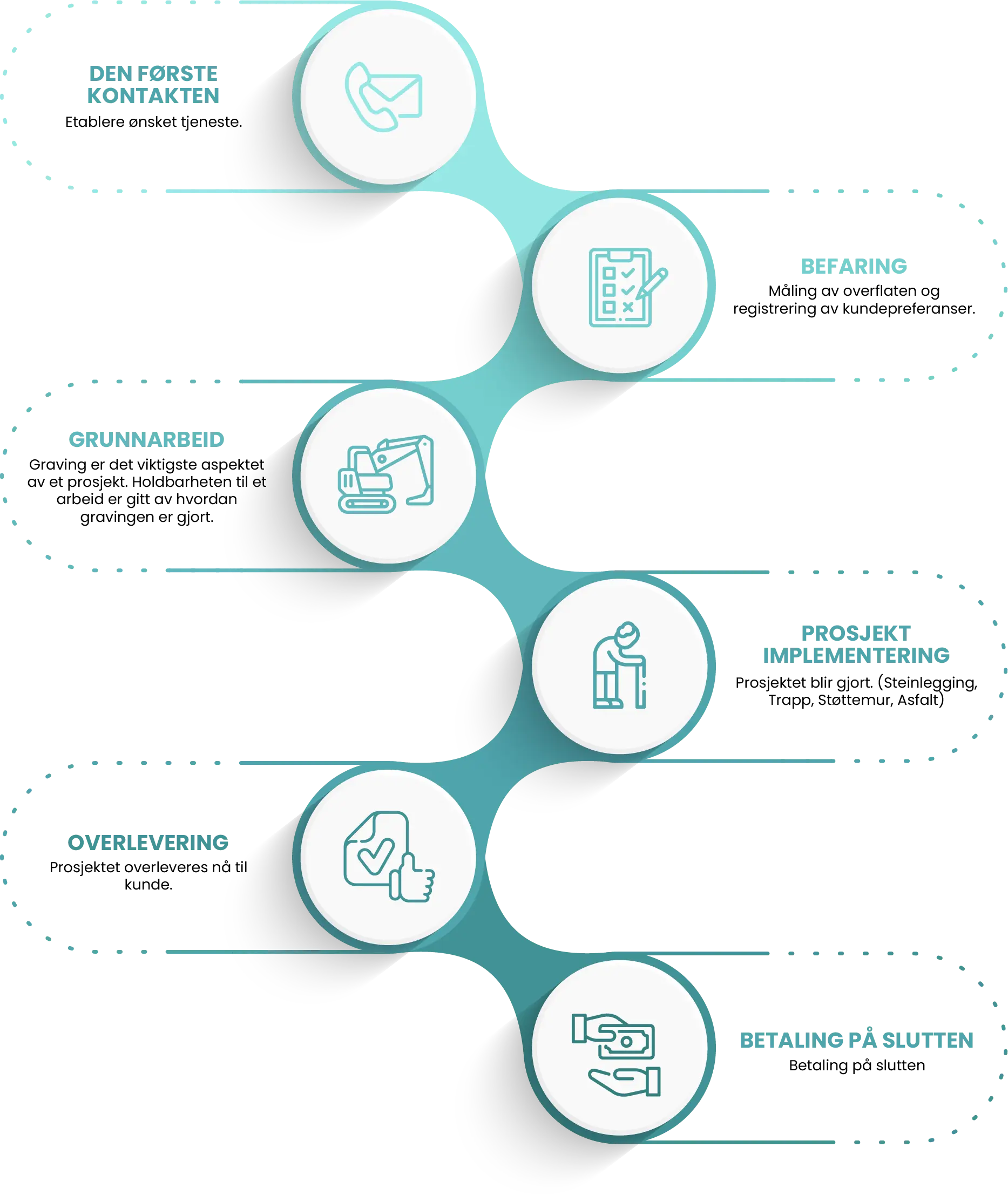 Vi er de raskeste! Et prosjekt på 100 kvm belegningsstein, inkl. grunnarbeid tar i gjennomsnitt fem dager.